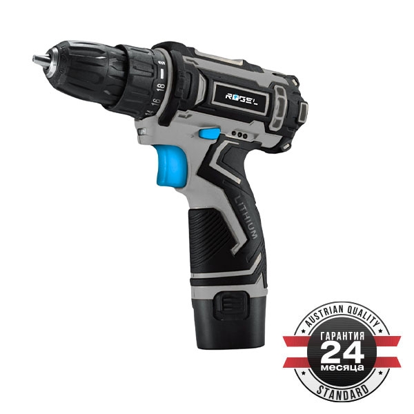 Дрель-шуруповёрт аккумуляторная RÖGEL, 12 В, 0-350/0-1350 об/мин, 2.0 Ач, 25 Нм, 2 АКБ, кейс