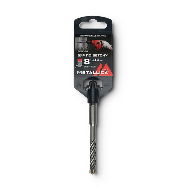 Бур по бетону SDS-plus METALLICA Ultra 8х110/50 мм, Х-напайка, 4 спирали
