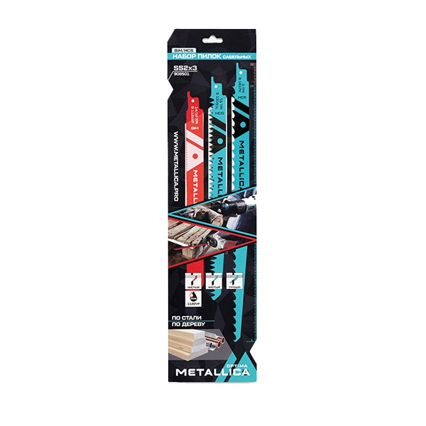Набор пилок сабельных METALLICA Optima №2, S1531L/S1617K/S1122VF, 225-300мм, дер/мет, в карт., 3шт