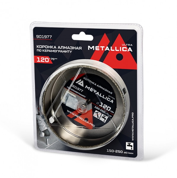Коронка алмазная METALLICA Ultra 120х70 мм, #46, с сверлом, по керамограниту, плитке, в блистере.