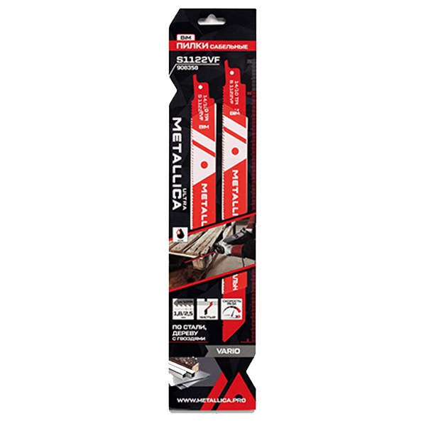 Пилка сабельная METALLICA Ultra S1817TCT 460/345мм шаг 17,3мм, TCT-тв. спл., по газобетону/ ЦСП 1шт