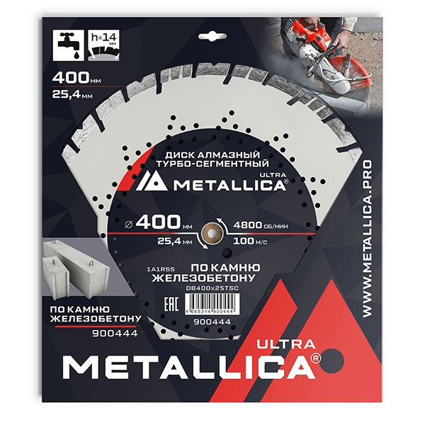 Диск алмазный турбо-сегментный METALLICA Ultra 400x25,4 мм, H=14 мм по ж/бетону. В кор.