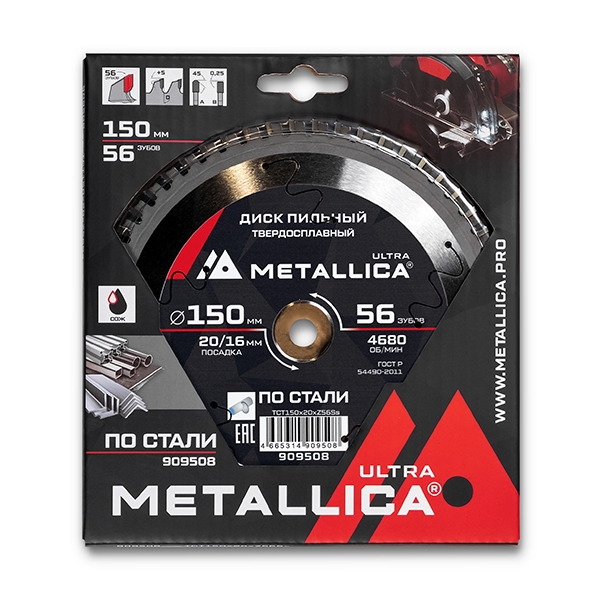 Диск пильный тв. сплав. METALLICA Ultra 150x20/16 мм, 56 зубов, Т=2.0 мм по стали