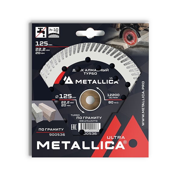 Диск алмазный турбо METALLICA Ultra 125x22,2/20 мм, H=10 мм по граниту. В кор.