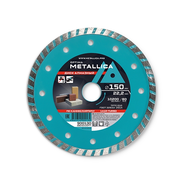 Диск алмазный турбированный METALLICA Optima 150x22,2 мм, H=7 мм по камню, кирпичу. Без уп.