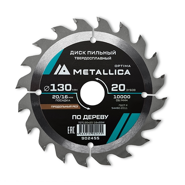 Диск пильный тв. сплав. METALLICA Optima 130x20/16 мм, 20 зубов, Т=2,4 мм по дереву продольный