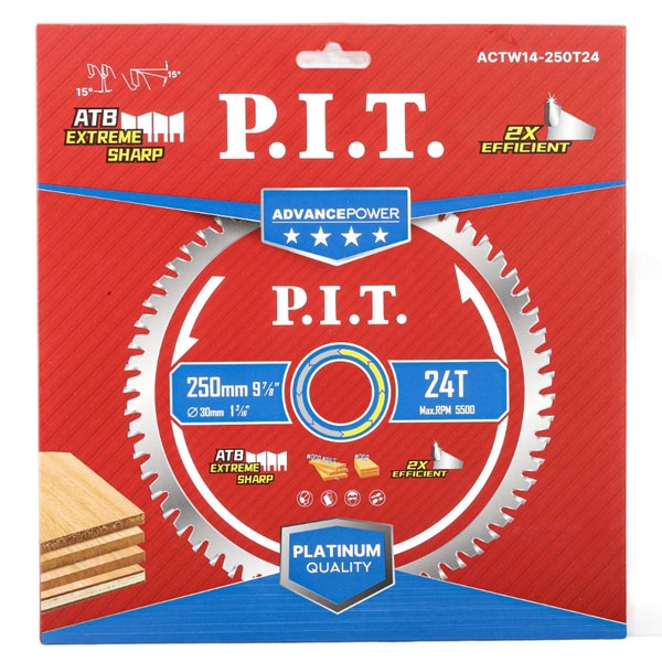 Диск пильный по дереву P.I.T. ADVANCE 250x30x2,2 мм, 24T Carbide, зуб ATB 15°