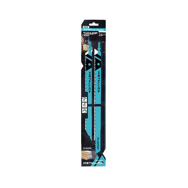Пилки д/лобзика METALLICA Optima T1044DP, 250/225мм шаг 4мм, HCS толст., прям. рез, по дереву 2шт