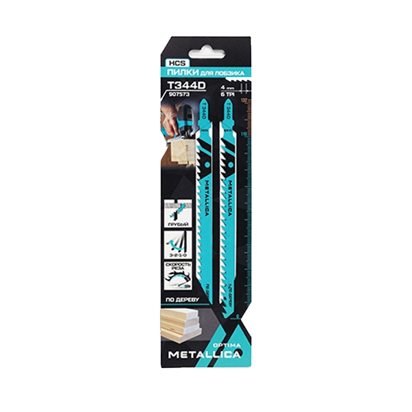 Пилки д/лобзика METALLICA Optima T344D, 132/110мм шаг 4мм, HCS грубый рез, по дереву 2шт