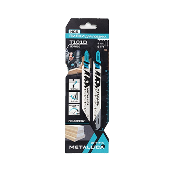 Пилки д/лобзика METALLICA Optima T101D, 100/75мм шаг 4мм, HCS быстрый рез, по дереву 2шт