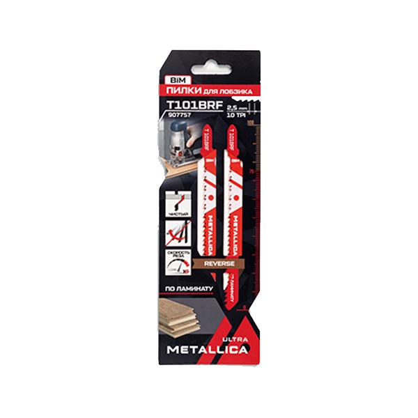 Пилки д/лобзика METALLICA Ultra T101BRF, 100/75мм шаг 2,5мм, BiM обрат/зуб, чист. рез, дер/ЛДСП 2шт