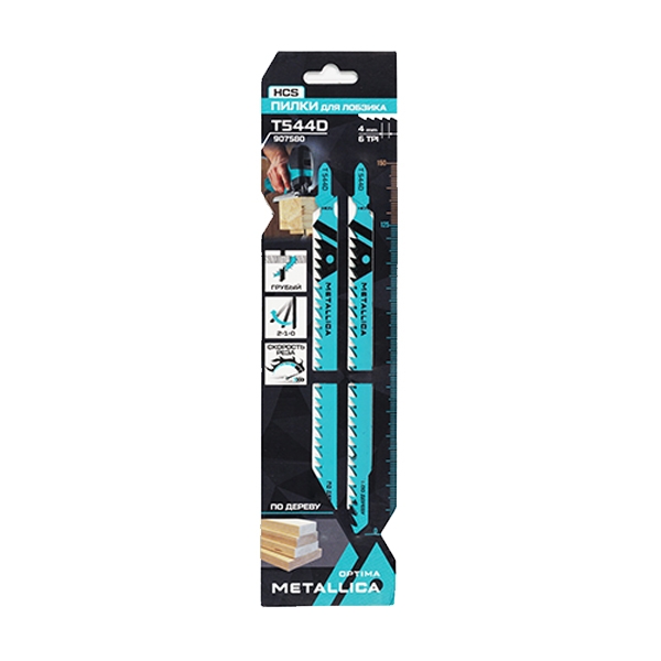 Пилки д/лобзика METALLICA Optima T544D, 150/125мм шаг 4мм, HCS грубый рез, по дереву 2шт
