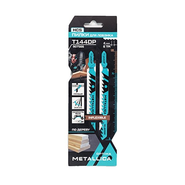 Пилки д/лобзика METALLICA Optima T144DP, 100/75мм шаг 4мм, HCS толст., прям. рез, по дереву 2шт