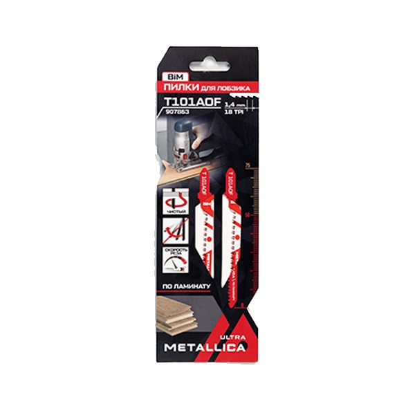 Пилки д/лобзика METALLICA Ultra T101AOF, 75/50мм шаг 1,4мм, BiM крив. чист. рез, по дер/ЛДСП 2шт