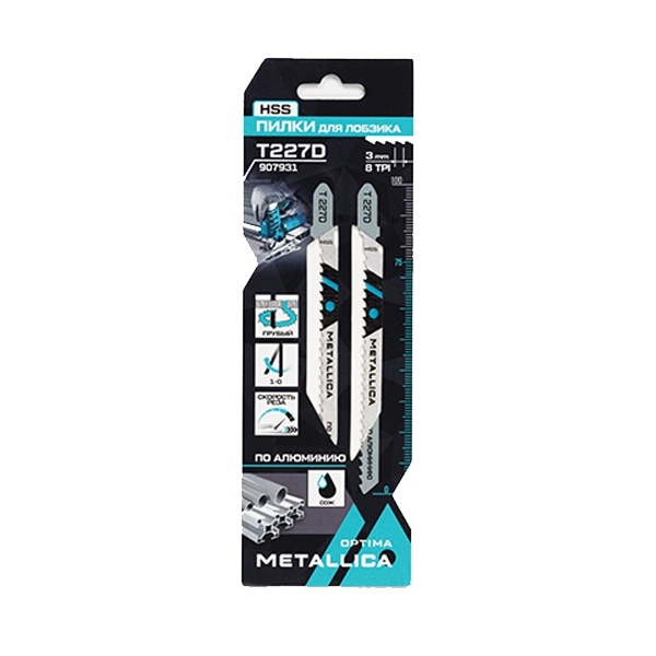 Пилки д/лобзика METALLICA Optima T227D, 100/75мм шаг 3мм, HSS крив. рез, по алюминию 2шт