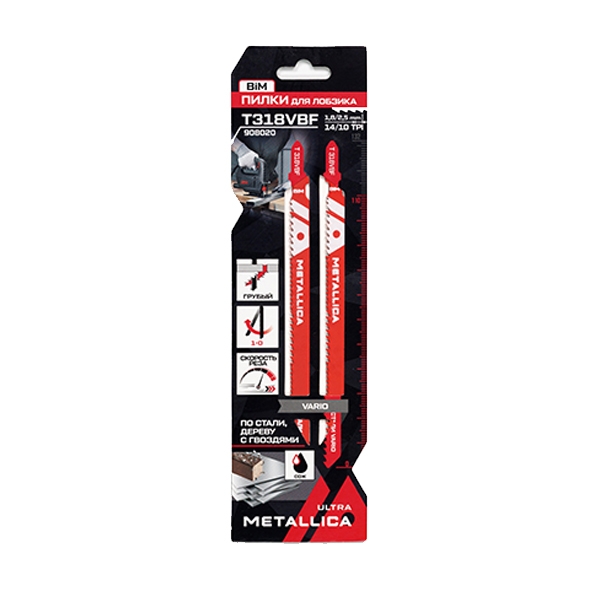 Пилки д/лобзика METALLICA Ultra T318VBF, 132/110мм шаг 1,8-2,5мм, BiM Vario, по стали 4-7мм, 2шт