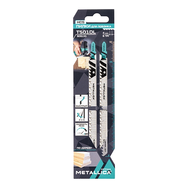 Пилки д/лобзика METALLICA Optima T501DL 152/126мм шаг 4мм, HCS быстрый рез, по дереву 2шт