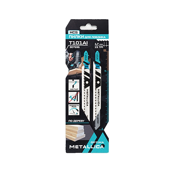 Пилки д/лобзика METALLICA Optima T101AI, 100/75мм шаг 1,7мм, HCS чистый рез, по дереву 2шт
