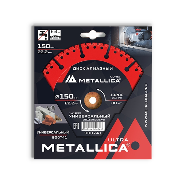 Диск алмазный сегментный METALLICA Ultra 150x22,2 мм, H=4 мм универсальный. В кор.