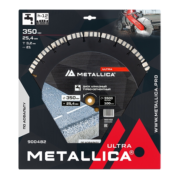 Диск алмазный сегментный METALLICA Ultra 350x25,4 мм, H=10 мм по асфальту 100 м/с. В кор.