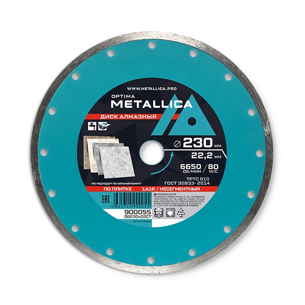 Диск алмазный несегментный METALLICA Optima 230x22,2 мм, H=7 мм по облицовочной плитке. Без уп.