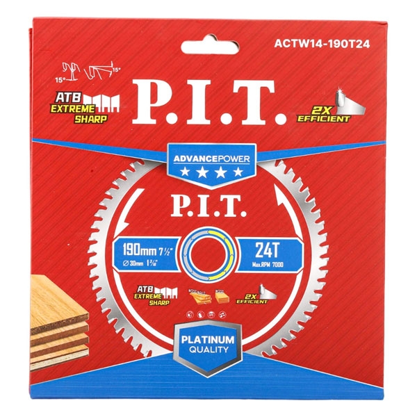 Диск пильный по дереву P.I.T. ADVANCE 190x30x1,4 мм, 24T Carbide, зуб ATB 15°