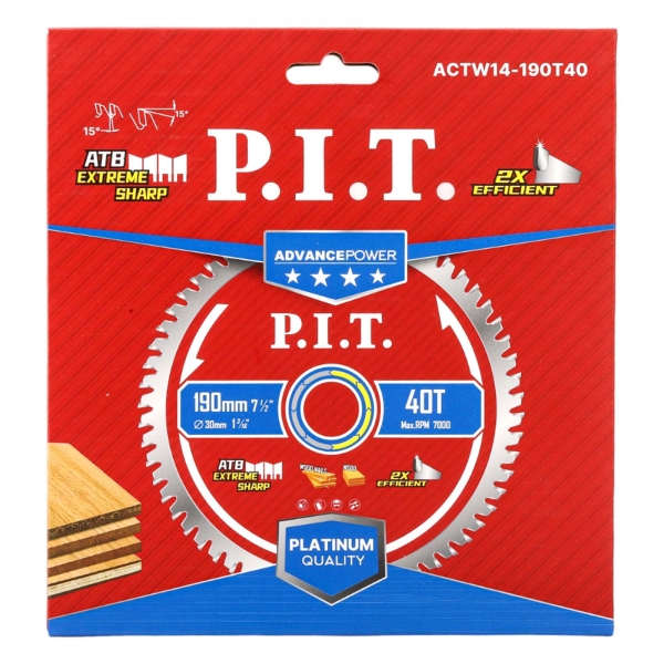 Диск пильный по дереву P.I.T. ADVANCE 190x30x1,4 мм, 40T Carbide, зуб ATB 15°