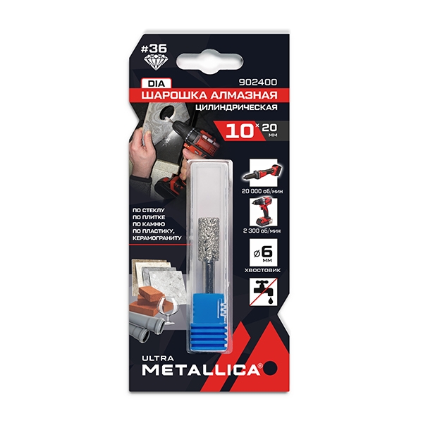 Шарошка алмазная METALLICA Ultra цилиндр 10х20 мм, #36, L=60 мм, по граниту, бетону, плитке