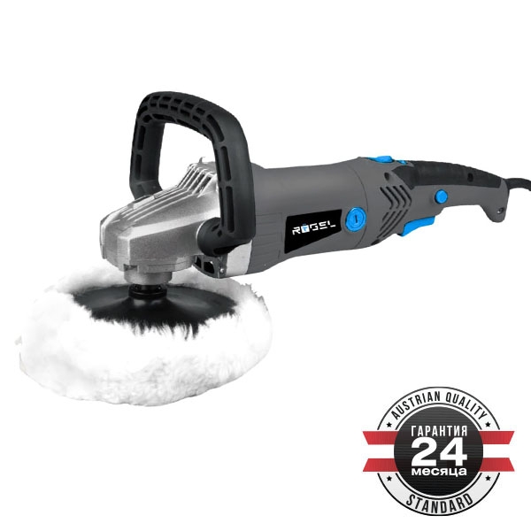 Полировальная шлифмашина RÖGEL, 1400 Вт, 600-3000 об/мин, пов. рукоятка, бронир. ротор, диск 180 мм