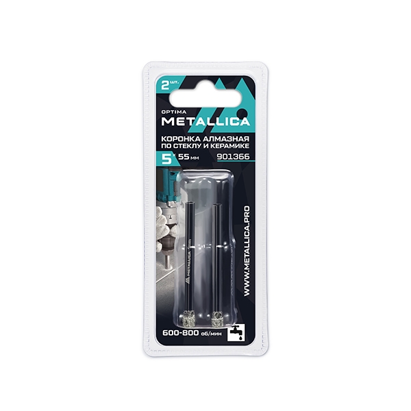 Коронки алмазные METALLICA Optima 5x55 мм, #80, по стеклу, плитке, 2 шт, в блистере.