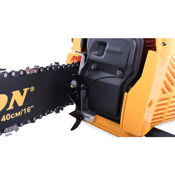 Боковое натяжение цепи позволяет быстро, удобно и безопасно подтянуть или заменить пильную цепь на бензиновой пиле.