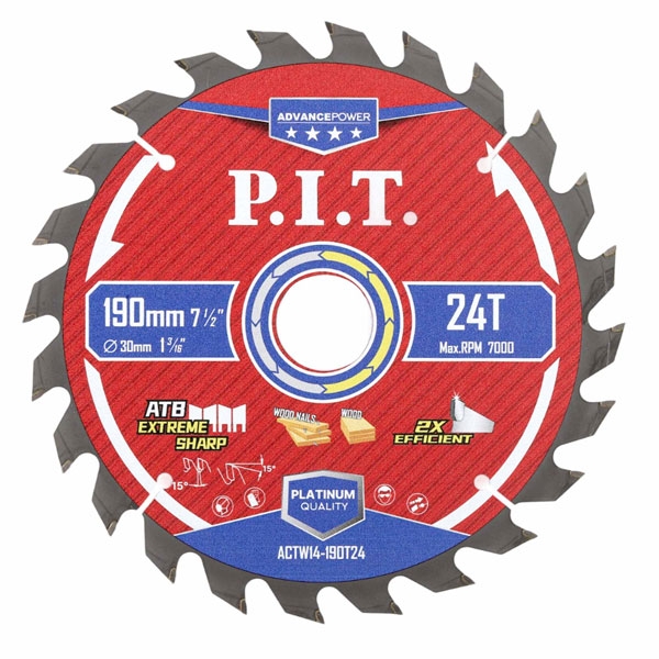 Диск пильный по дереву P.I.T. ADVANCE 190x30x1,4 мм, 24T Carbide, зуб ATB 15°