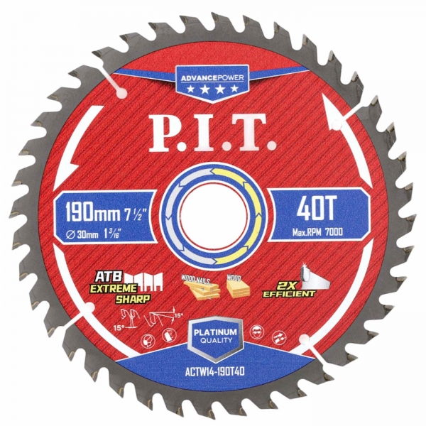 Диск пильный по дереву P.I.T. ADVANCE 190x30x1,4 мм, 40T Carbide, зуб ATB 15°