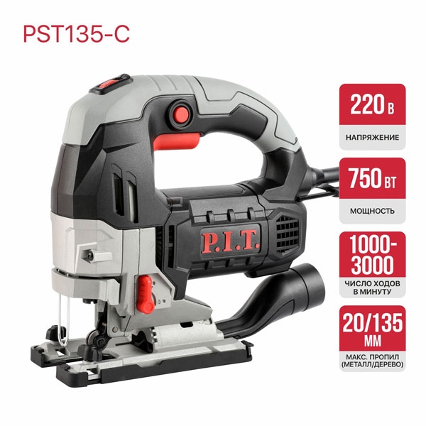 Лобзик электрич. P.I.T., 750Вт, 135 мм, 1000-3000ход/мин, БЗП, маятник, ход 26мм, обдув