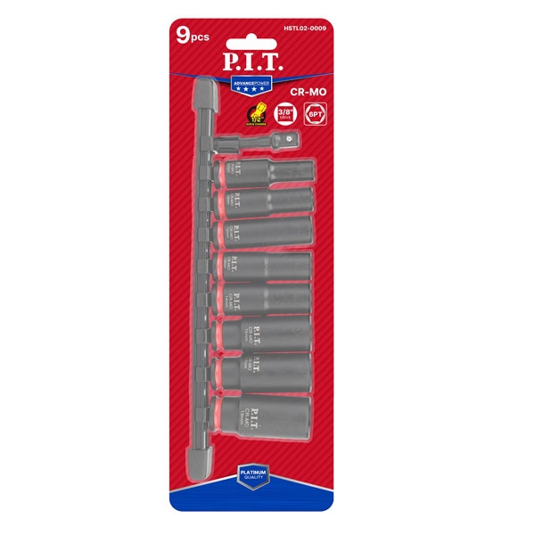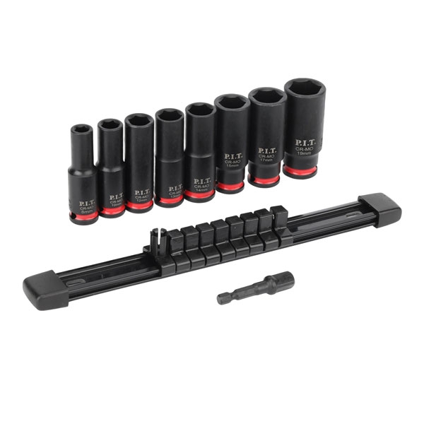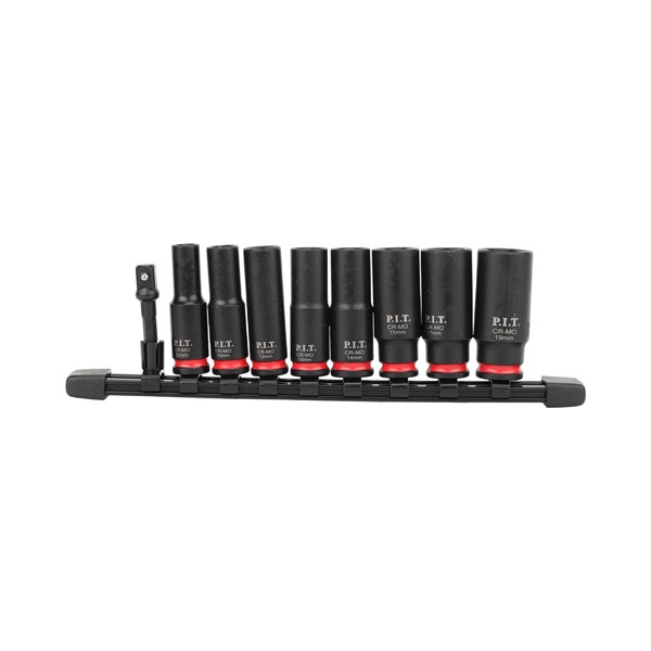 Набор головок торцевых ударных P.I.T. ADVANCE, 9шт, 3/8", HEX 8-19мм, 78мм, 42CrMo