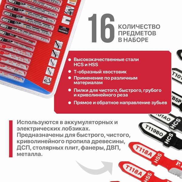 ПодробнееНабор пилок для лобзиков AJSB01-0016 идеальный выбор для разных работ с различными материалами. В комплект входят пилки по дереву, для криволинейных резов в дереве, по металлу.