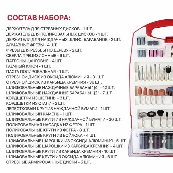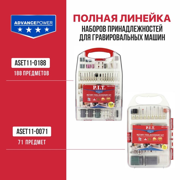 Набор принадлежностей для гравировальных машин P.I.T., 188 предметов, пластиковый кейс