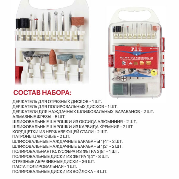 Набор принадлежностей для гравировальных машин P.I.T., 71 предмет, пластиковый кейс