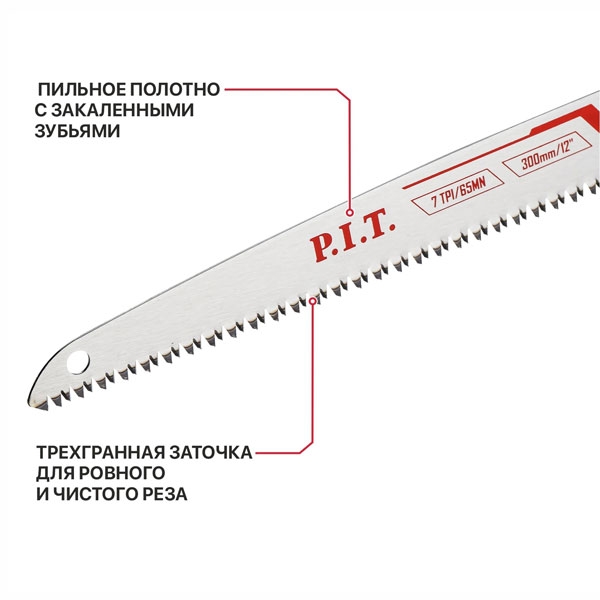 Ножовка по дереву садовая P.I.T. CONTROL, 300мм, 7 TPI, 183г, лезвие сталь 65Mn