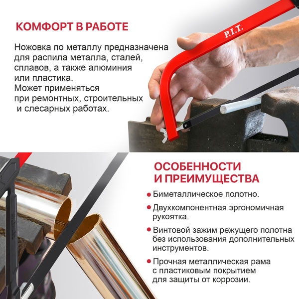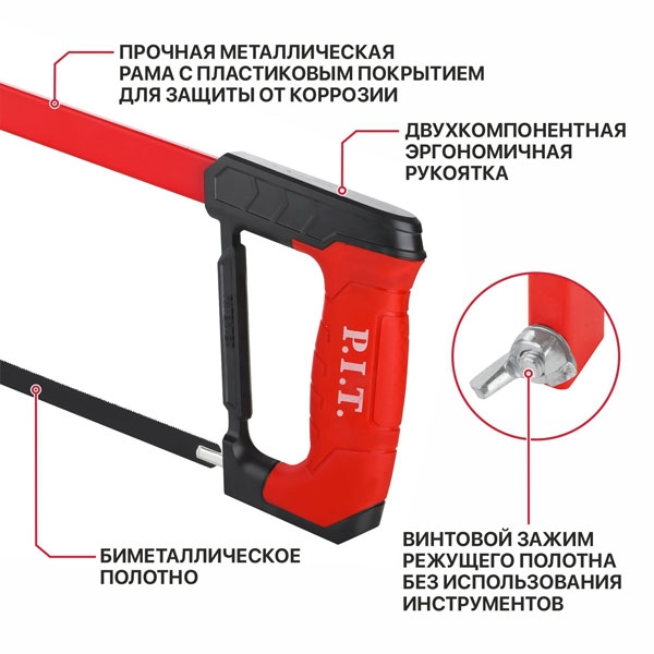 Ножовка по металлу P.I.T. ADVANCE, 300мм, 376г, полотно BiM, 24 TPI, винт. зажим