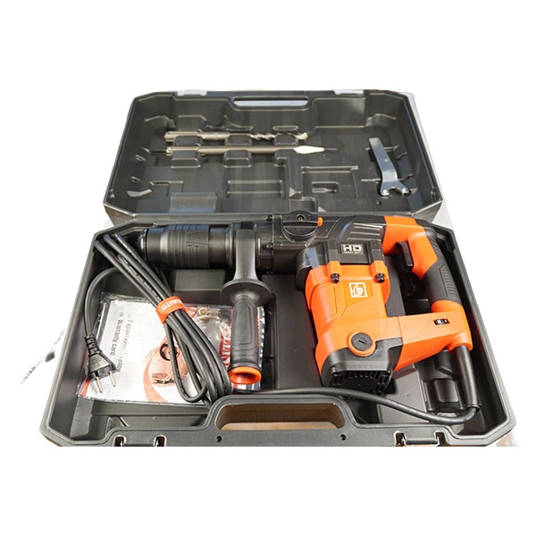 Перфоратор оснащён удобным выключателем с широкой клавишей и эргономичным дизайном, обеспечивающим комфорт и удобство в работе. В комплект входит пластиковый кейс для удобного хранения и транспортировки.