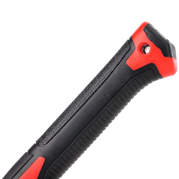 Топорище из обрезиненного фибергласа обладает высокой прочностью, предотвращает скольжение, снижает вибрацию при работе и устойчиво к воздействию окружающей среды.