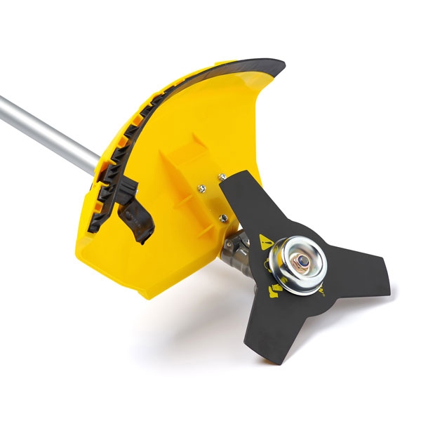 -Две режущие оснастки: триммерная головка и 3-х лопастной нож.